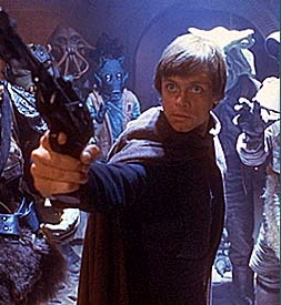 | .Se rendant sur Aldérane à bord du Faucon Millénium, vaisseau de Yan Solo et du Wookie Chewbacca, ils constatèrent qu'elle fut détruite par l'Etoile Noire de l'Empire.Malgré eux, ils accostèrent sur l'Etoile.A la suite de plusieurs aventures, ils réussirent à libérer la princesse Leia du grand Moff Tarkin, et détruisirent la Station Spaciale avec l'aide des Rebelles.Trois ans plus tard, il dut encore affronter l'Empire sur la planète glaçée Hoth.Après une terrible bataille, il alla sur Daghoba suivre l'enseignement du maître Jedi Yoda.Il interrompi prématurément sa formation pour sauver ses amis, prisonniers de Vador sur Bespin, citée minière dirigée par Lando Calrissian.Il tomba dans le piège de Vador et dû l'affronter.Pendant le combat, il eut la main droite tranchée, et Vador lui révela qu'il était son père.Il fut sauvé in-extremis par le Faucon Millénium. |