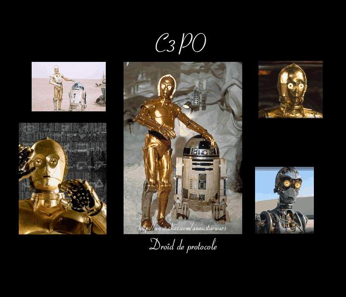 Droide de protocole doré parlant plus de 6 millions de langues. Compagnon inséparable de R2-D2, et malgré son enclin à réprimander en permanence ceux qui l'entourent, ils entrèrent sur le vaisseau consulaire de la princesse Leia, le Tantive 4, au service du capitaine Antillès. Mais, après la capture du vaisseau par les Forces Impériales, ils durent fuire, emportant avec eux les plans de l'étoile Noir.Z-6PO rencontra alors son nouveau maître, Luke Skywalker, pour qui il allait être entièrement dévoué.Malgré un tempérement couard, Z-6PO a participé au sauvetage de la princesse Leia à bord de la 1ere Etoile Noir et au raid de Yan Solo sur la lune forestière d'Endor, ou il a convaincu les Ewoks de se joindre aux rebelles.En plus de sa fonction, Z-6PO est équipé de nombreux outils, comme un émetteur/senseur de micro-ondes, des photos-récepteurs, des senseurs audios et olfactifs, un vocabulateur, un transducteur et un cable de connexion multisystèmes.